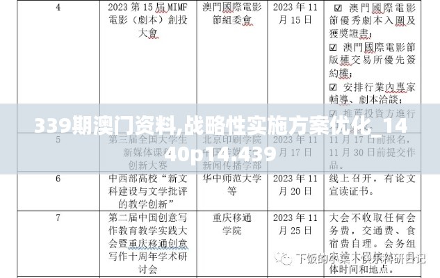第339期澳门资料中详细列举了战略性实施方案的优化重点,主要包括以下方面: