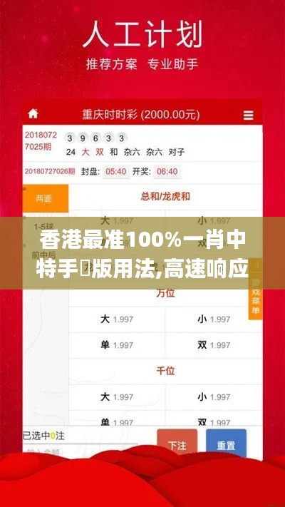 在当今这个数字化的时代,香港作为亚洲地区的经济中心,其科技发展一直走在最前沿。随着智能手机的普及和移动互联网技术的进步,香港的一些企业和组织开始关注并探索更多高效、精准的信息传播方式。“香港最准100%一肖中特手機版用法,高速响应方案解析_kit8.334”便是在这样的背景下应运而生。该系统通过集合最新的人工智能技术和大数据分析,为香港地区提供了一个快速、准确的手机版信息发布方案。本文将就这一方案进行详细的介绍和解析。