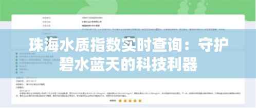 标题:珠海水质指数实时查询:守护碧水蓝天的科技利器