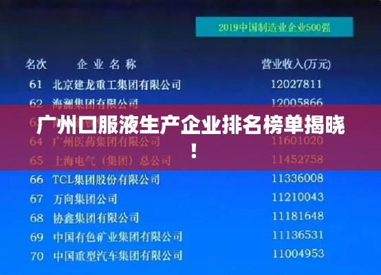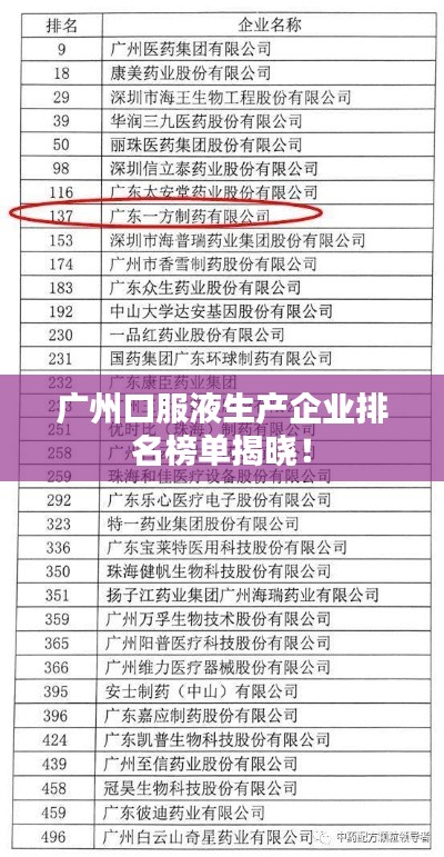 广州,作为中国南方的经济重镇,一直以来都是医药产业的重要基地之一,随着健康产业的快速发展,口服液市场也在不断扩大,本文将介绍广州地区的口服液生产公司排名,以便对行业内企业有更深入的了解。