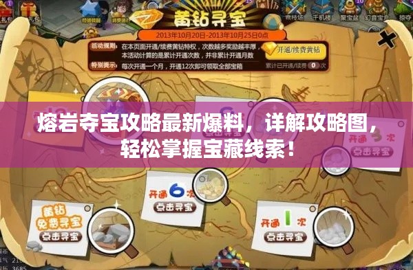 最新爆料攻略图将为你的熔岩夺宝之旅提供有力支持,助你轻松获胜,玩家在游戏中还需保持警惕,善用道具,团队协作,以取得最终胜利,希望本文能为你带来帮助,祝你在熔岩夺宝中取得丰厚奖励!