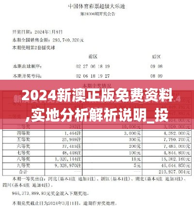 2024年的新澳地区对于中国投资者来说是一个重要机遇,既蕴含着海量投资机会,也面临着多重挑战。本篇文章“2024新澳正版免费资料,实地分析解析说明_投资版8.768-3”从多方面较详细地剖析了2024年新澳地区的投资现状和两劣势。对于中国投资者来说,现阶段不妨高度关注并深入研究新澳地区的投资问题,从中挖掘出助力自身发展壮大的新路径。