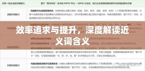 在现代社会,效率已成为各行各业追求的重要目标之一,无论是企业管理、工作流程还是日常生活,我们都希望提高效率,以取得更好的成果,本文将围绕“效率不断近义词”这一主题展开,探讨效率的重要性及其近义词,以期加深对效率的理解。