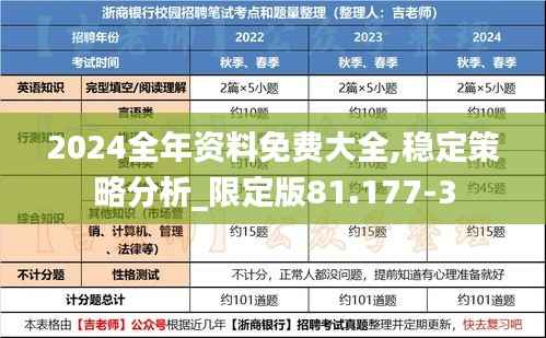 在知识爆炸的时代,获取高质量的资料和信息显得尤为重要。尤其是对于那些渴望全面了解某一领域,却苦于资源分散的专业人士,一个专业、系统的资料包简直是宝藏。今天,我们要介绍的便是一份全新的2024全年资料免费大全,为那些在各自领域苦苦探索的专业人士提供稳定策略分析的限定版方案。这份资料包中强有力的限定版编号“81.177-3”代表了对我们筛选和奉献的承诺,其目的是让每一位用户都能通过这份大全更系统、更有效地吸收新的知识点,最终达到深化理解和提升实践能力的目标,从而推动对应领域乃至整个行业的进步。
