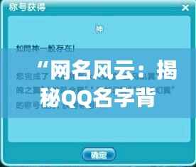在数字化时代的浪潮下,QQ作为一款老牌社交软件,依然在年轻群体中保持着旺盛的生命力。而在这片虚拟的社交江湖中,QQ名字无疑成为了每个人独特的“门面”。一个好的QQ名字不仅能吸引眼球,更是个人性格、品味甚至社交态度的缩影。今天,我们就来深入探讨那些热门QQ名字背后的故事,揭秘它们如何在网络世界中掀起一场又一场的风云。