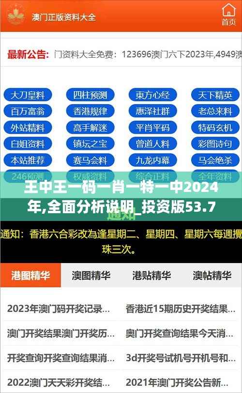 王中王,这个令人肃然起敬的称号,在2024年的全面分析说明中显得尤为重要。作为一个涵盖了众多领域的品牌符号,它不仅仅是一个标签,更是品质、信誉和先进技术的代名词。从“一码”可以看出其在信息技术领域的深耕,而“一肖一特一”则暗示着独特性和个性化服务理念的融入。这篇文章将带你走进王中王的荣耀历史,并探索其如何在未来的投资版图中占据重要地位。