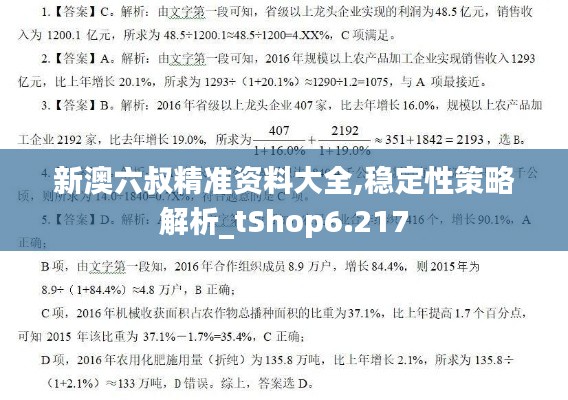 新澳六叔精准资料大全为我们提供了一个全面、深入的学习和交流平台,让我们能够更好地掌握市场动态,制定有效的稳定性策略。通过对资料大全的学习和应用,我们可以帮助自己和企业在变化莫测的市场环境中,保持稳定的发展和竞争优势。