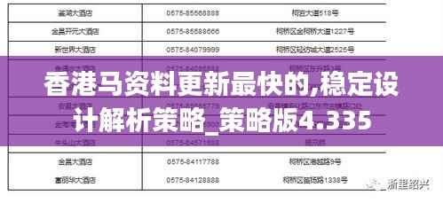 在“策略版4.335”中,“香港马资料”的实时更新功能是该软件的核心卖点。我们拥有专业的数据团队和先进的技术支撑,确保每一位用户只要打开软件,就能立刻访问到最新最快的马赛资讯和预测结果。无论是马匹的最新表现、赛马的实时赔率变化,还是赛场的最新布局分析,所有的这些信息都是实时更新的,这是保证用户能够把握最新信息,从而作出明智投资决策的关键因素。 “香港马资料”的实时性,无疑将为马赛投注者、投资者和爱好者提供了极大的便利。